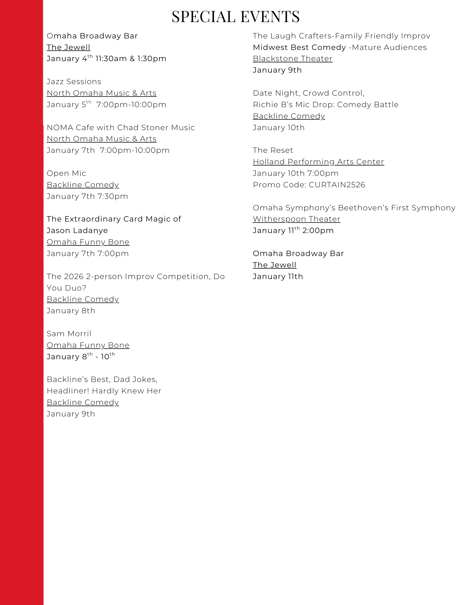 Be in the know of upcoming shows